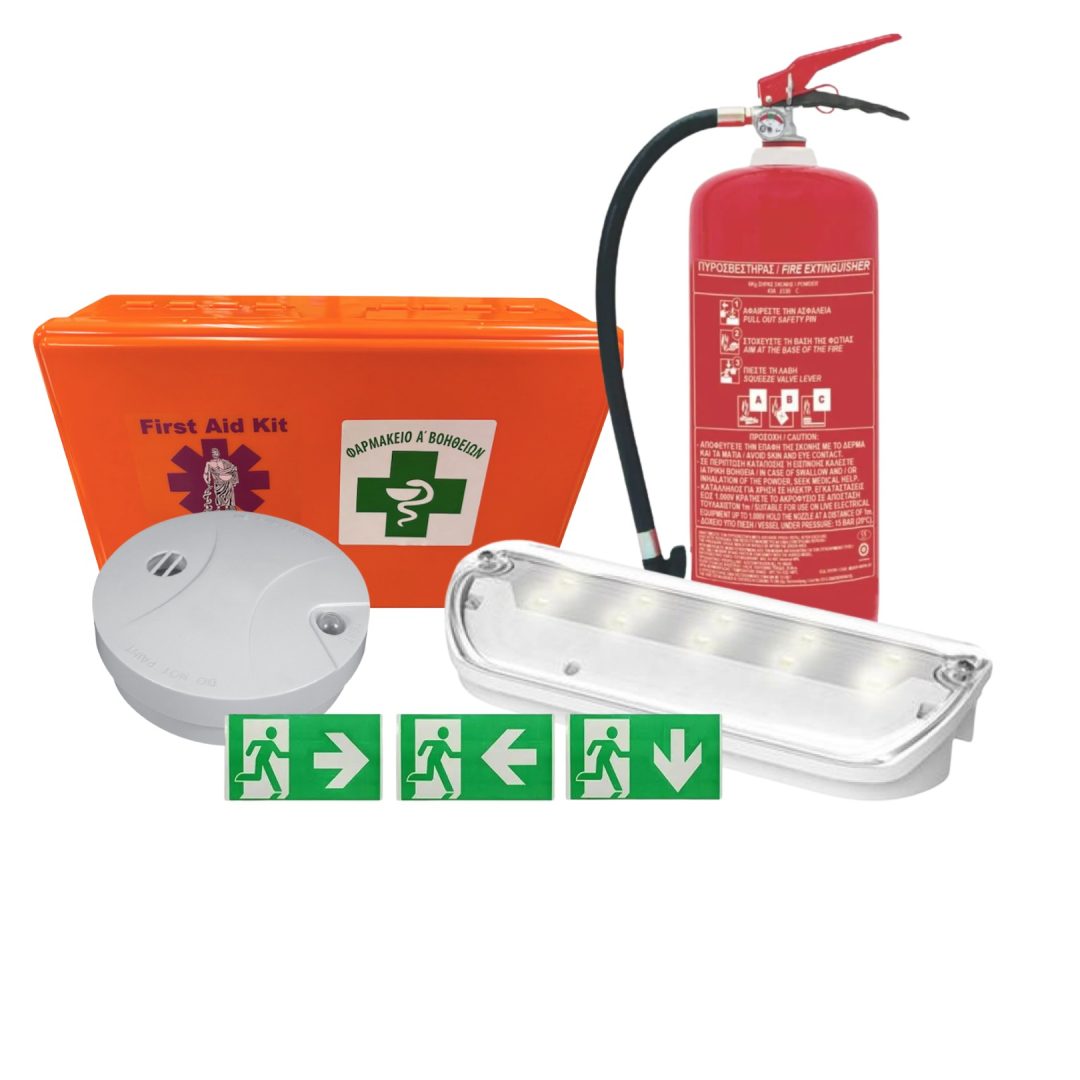 Το πακέτο πυρασφαλείας και πρώτων βοηθειών συμφωνεί με την Εγκύκλιο του ΦΕΚ Α’ 620-01-2025